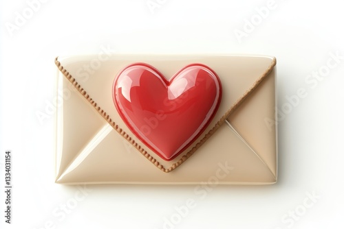 3D Illustration of Love Letter Sealed with Red Heart, Isolated on White Background