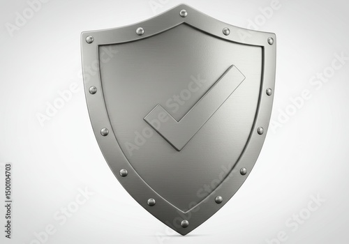 3D Illustration of Metal shield with check mark isolated on white background