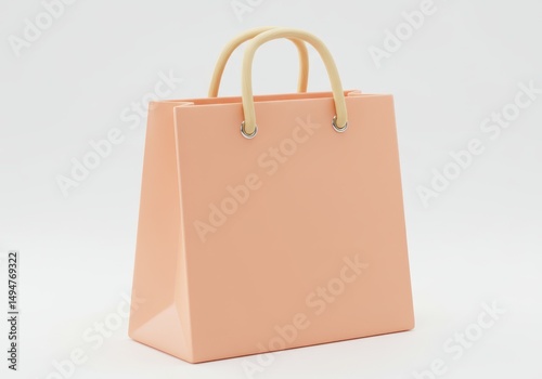 3D Illustration of Peach shopping bag isolated on white background, with beige handles