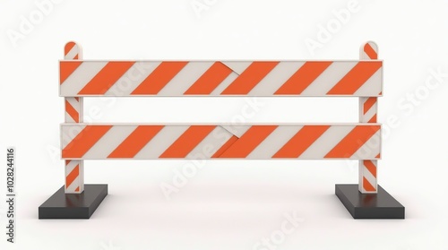 3D illustration of road construction barricade with warning stripes