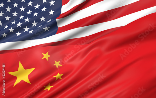 3D illustration of USA and China flag