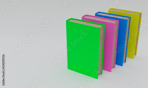 3d illustration, several books, placed vertically, light background, copy space 3d rendering