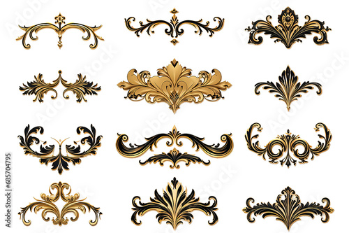 3d illustration stucco decoration, gold cartouche isolated on PNG Background. Generative Ai.