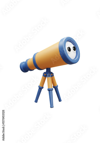 3D Illustration Telescope Tripod Yellow and Blue Astronomy Tool Object