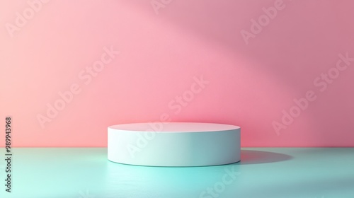3D illustration, white round podium, pastel background and floor, beautiful, cute, suitable for displaying products, helping in designing various media.
