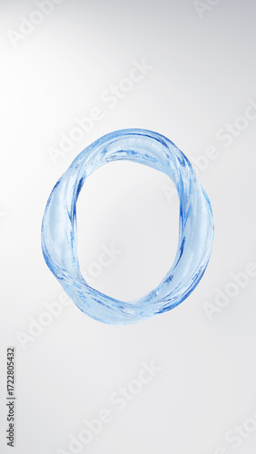 3D Illustration.A circular light blue liquid on a white background. The number 0. Twisted water. (Vertical)