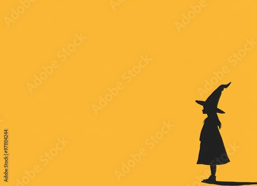 3D image of a girl in a witch's hat holding a decorative bat for Halloween