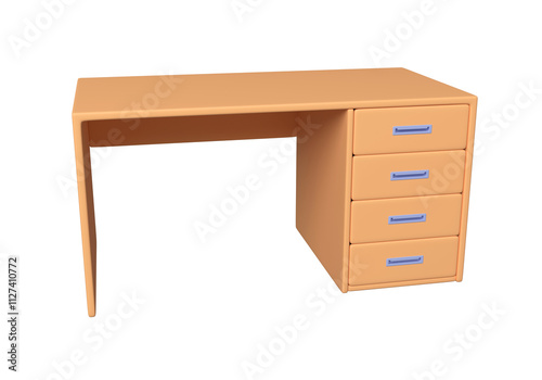 3d isolated office desk. Empty rectangular table with drawers. 3d rendering