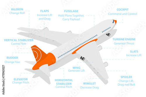 3D Isometric Flat Conceptual Illustration of Airplane Parts, Aircraft Service