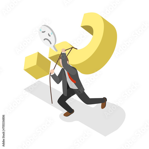 3D Isometric Flat Conceptual Illustration of Hard Question , Communication Problem