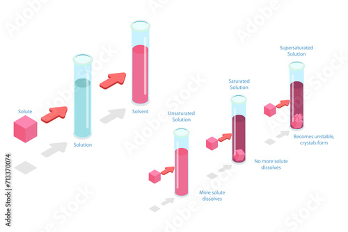 3D Isometric Flat Conceptual Illustration of Solubility, Educational diagram