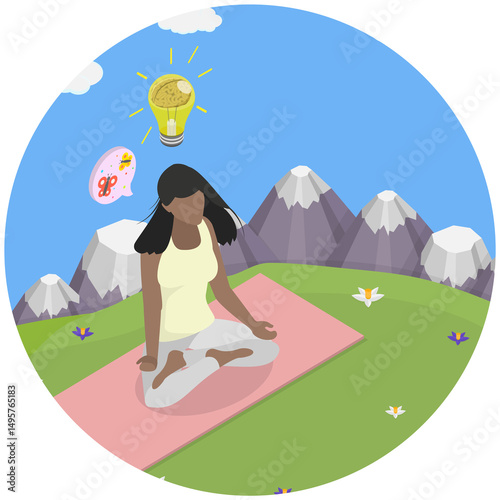 3D Isometric Flat Illustration of Achieving Balance And Harmony In Mind And Body, Spiritual Practice