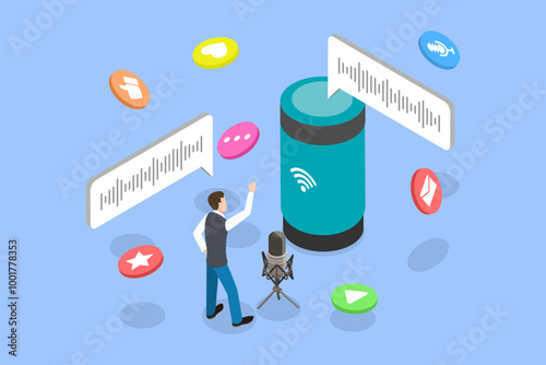 3D Isometric Flat Vector Illustration of Voice Assistance, Verbal Commands and Responses