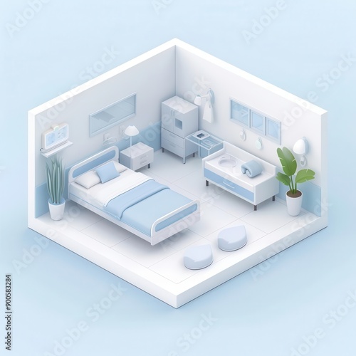 3D isometric illustration of a pediatric ward, Medical Facility, child-friendly healthcare