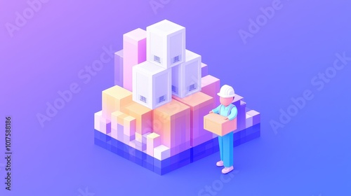 3D Isometric Illustration of Delivery Person with Parcels and Boxes