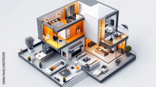3d isometric view of a modern smart home. 3D rendering. Background for business