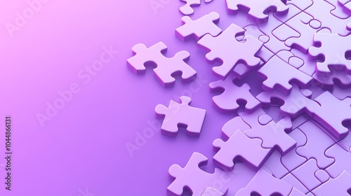 3D jigsaw puzzle on a purple background, symbolizing business success and teamwork.