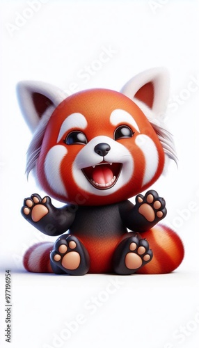 3D lachender roter Panda, weißer Hintergrund