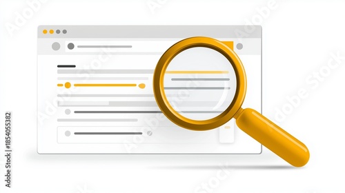 3D Magnifying Glass Analyzing Digital Web Browser Interface