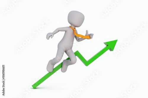 3d man red arrow success chart on white background.