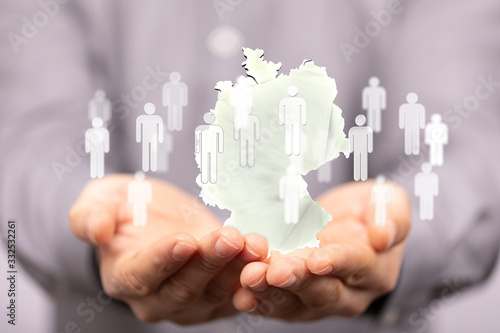 3D map of Germany. Map of Germany land border with flag. Germany map on white background. 3d rendering.
