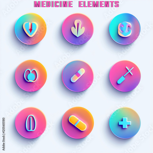 3D Medicine set icon Tablet capsule heart cardiology pharmacy runny nose first aid kit
