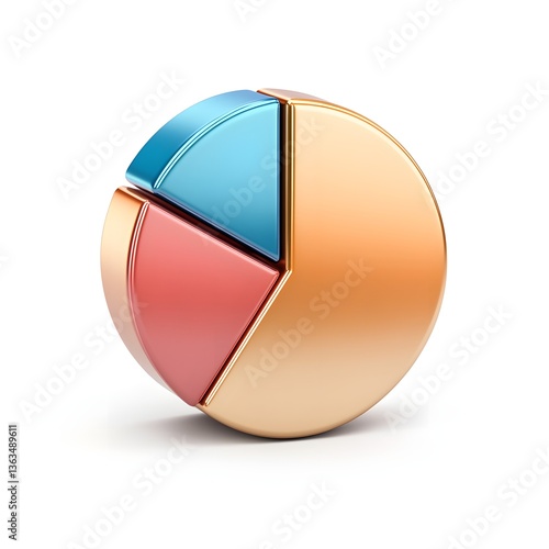 3D Metallic Pie Chart Gold Red Blue Sectors Data Analysis Presentation