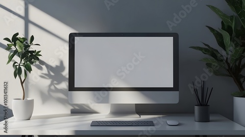 3D Minimal desktop with blank screen mockup, Empty screen for text, and logo replacement concept. 3d render illustration.