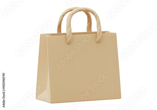 3D Minimalist Beige Shopping Bag with Twisted Handles for Retail Display PNG Cutout.
