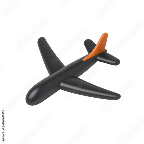 3D Model Illustration Of A Dark Airplane With Orange Detail Isolated Transparent Background