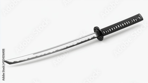 3D Model of a Simple Design Katana, Rendered in Blender with Plain Background