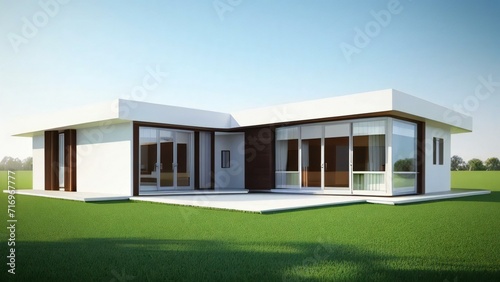 3D model of a white house against a gray backdrop. Concept for real estate or property.