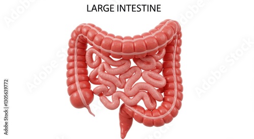 3D Model of Human Large Intestine Floating Against White Background