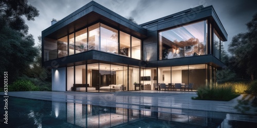 3D Modern house. Scandinavian style. Neutral colors. Minimalism. Generative AI