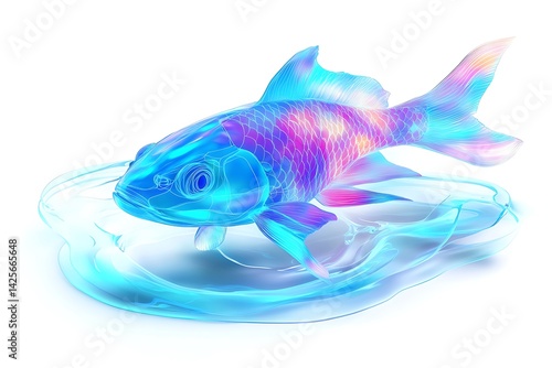 3D Neon Fish Swimming in Glowing Aquatic Environment