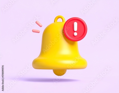 3D Notification Alert Icon with Exclamation Mark and Ringing Sound Waves