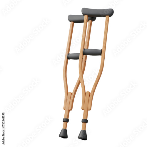 3d of a pair of wooden crutches isolated on transparent background