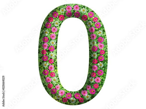3d of the number 0 is made of green grass and beautiful flower isolated on transparent background. Go green concept for Memorial Day template