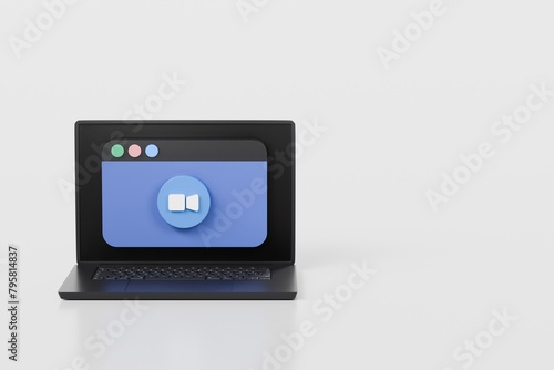 3d Online meeting with laptop icon isolated on white background. Online Meeting, Virtual Conference Video call, Briefing, Teamwork Concept. Minimal 3d Online meeting icon creative design. 3d render.