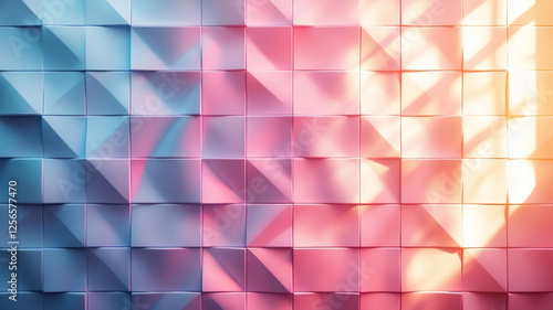 3D pastel gradient tiles in blue, pink, and peach tones with soft lighting and shadows