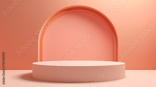 3d pastel pink peach podium display product background, mock up for web design with geometric forms