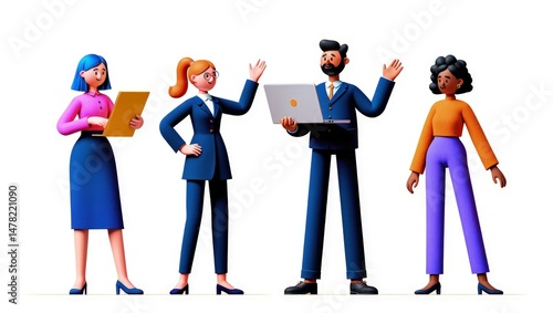 3D people with documents, symbolizing teamwork and information sharing. 3D rendering, conceptual image. Isolated on white background.