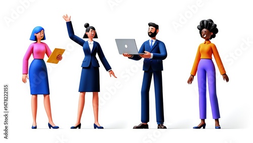 3D people with documents, symbolizing teamwork and information sharing. 3D rendering, conceptual image. Isolated on white background.