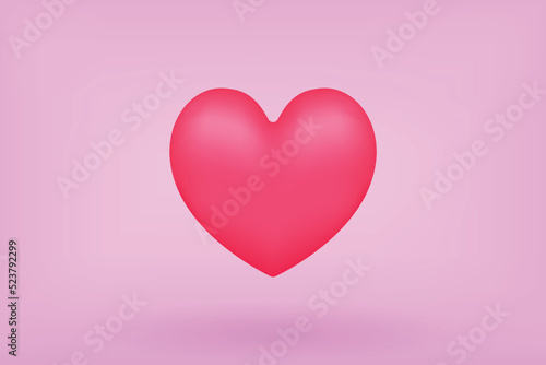 3d pink heart render minimal icon. Vector illustration isolated on pastel pink background
