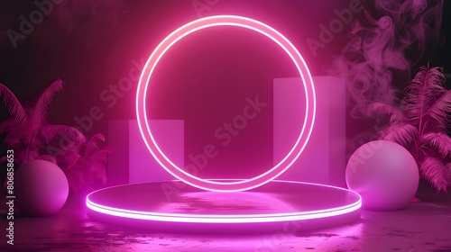 3d pink neon product platform