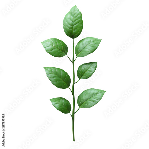 3D plant stem with green leaf PNG render icon isolated on white background.PNG