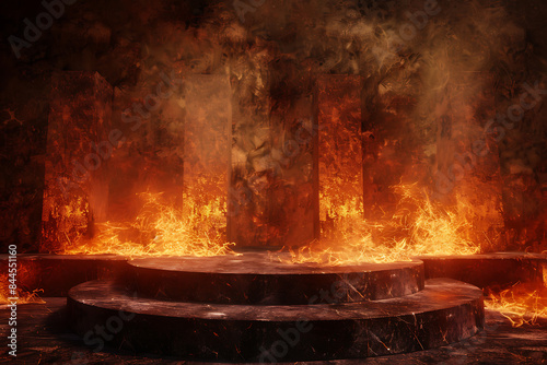 3D podium with a fiery background, creating a powerful and intense visual impact.