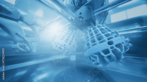 3D printer creating intricate lattice structures in a high-tech manufacturing environment