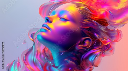 3D realistic colorful woman intelligence and beauty, resembling a woman sense of inner peace and wisdom. With visual contrast, isolated on solid pastel background