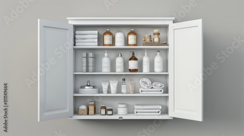 3D realistic image of a medicine cabinet, clean lighting, isolated on background